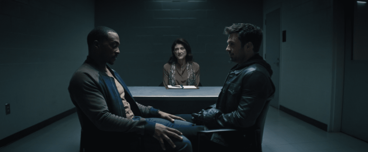 Le moins que l’on puisse dire, c’est que Falcon et le Soldat de l’Hiver démarre sur des chapeaux de roues. Quelques secondes après le logo Marvel c’est un véritable morceau de bravoure qui n’a rien à envier au cinéma qui s’offre à nous. Bien aidé par l’équipe des effets spéciaux, Kari Skogland met en scène une introduction impressionnante qui en met plein les yeux. Quelques minutes plus tard c’est une nouvelle scène d’action brutale qui vient nous rappeler qu’on est pas venu pour revoir de la sitcom en 4/3. Ce premier épisode pose les bases de l’histoire de façon efficace, même si on aurait pas refusé quelques coupes ici et là concernant Sam et sa sœur. Sam est fidèle à lui-même et est un grand humaniste toujours prêt à aider les autres, alors que Bucky tente tant bien que mal de se pardonner les horreurs qu’il a commises par le passé en jouant le bon samaritain. On voit très vite que ces deux protagonistes sont parfaits pour le côté buddy movie vanté par la campagne promotionnelle, étant donné que les deux font la même chose mais pour des raisons différentes et de façon différente. Si James semble crouler sous le poids de la culpabilité, Sam semble avoir du mal à trouver le courage nécessaire pour prendre la relève de Steve Rogers après Endgame. C’est le poids de l’héritage qui semble peser lourd sur les épaules de Sam Wilson dès les premières minutes, et c’est un aspect qui sera prépondérant pendant toute cette saison ; L’importance des symboles, devenir une icône, qu’est-ce que cela implique ? Est-ce que tout le monde peut devenir Captain America ? La réponse a déjà été donné dans le premier film de Joe Johnston en 2011, lorsque le personnage de Stanley Tucci disait à Steve que l’important n’était pas d’être « un bon soldat » mais « un homme bien ».