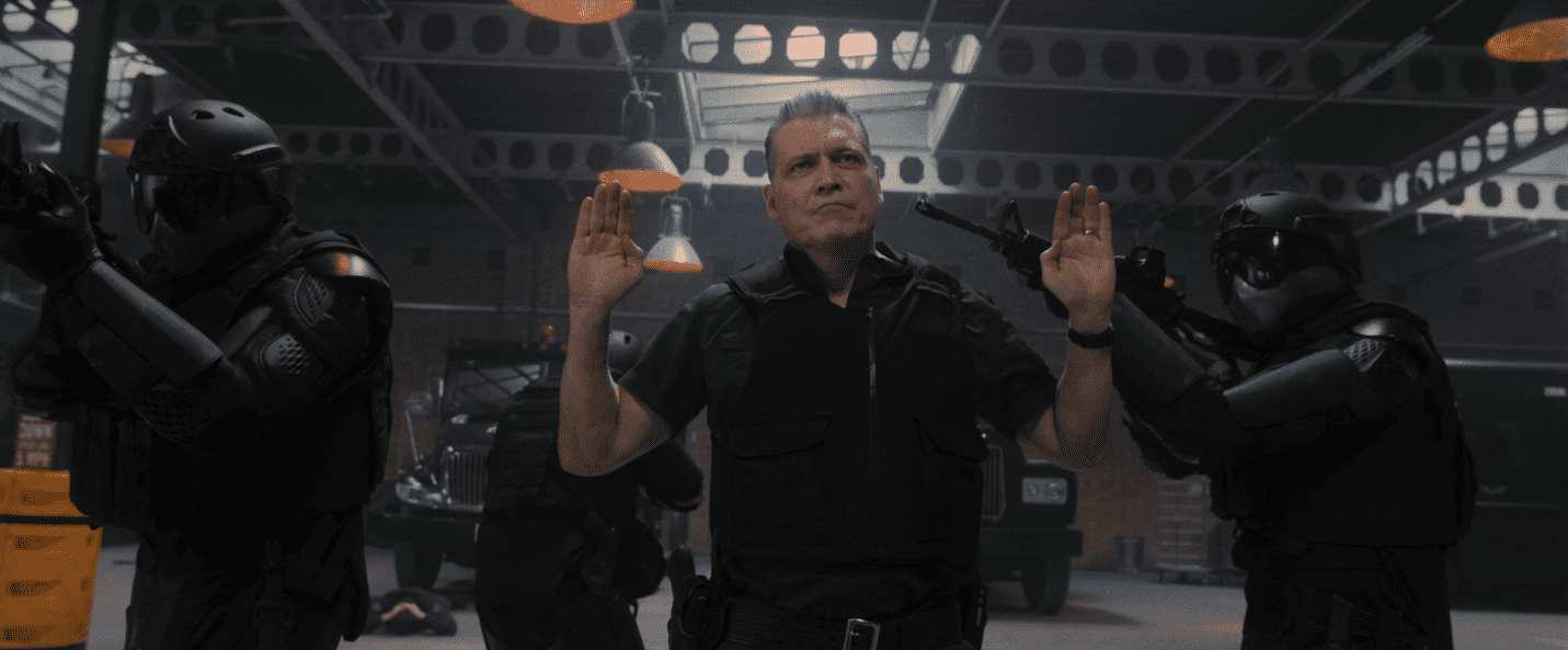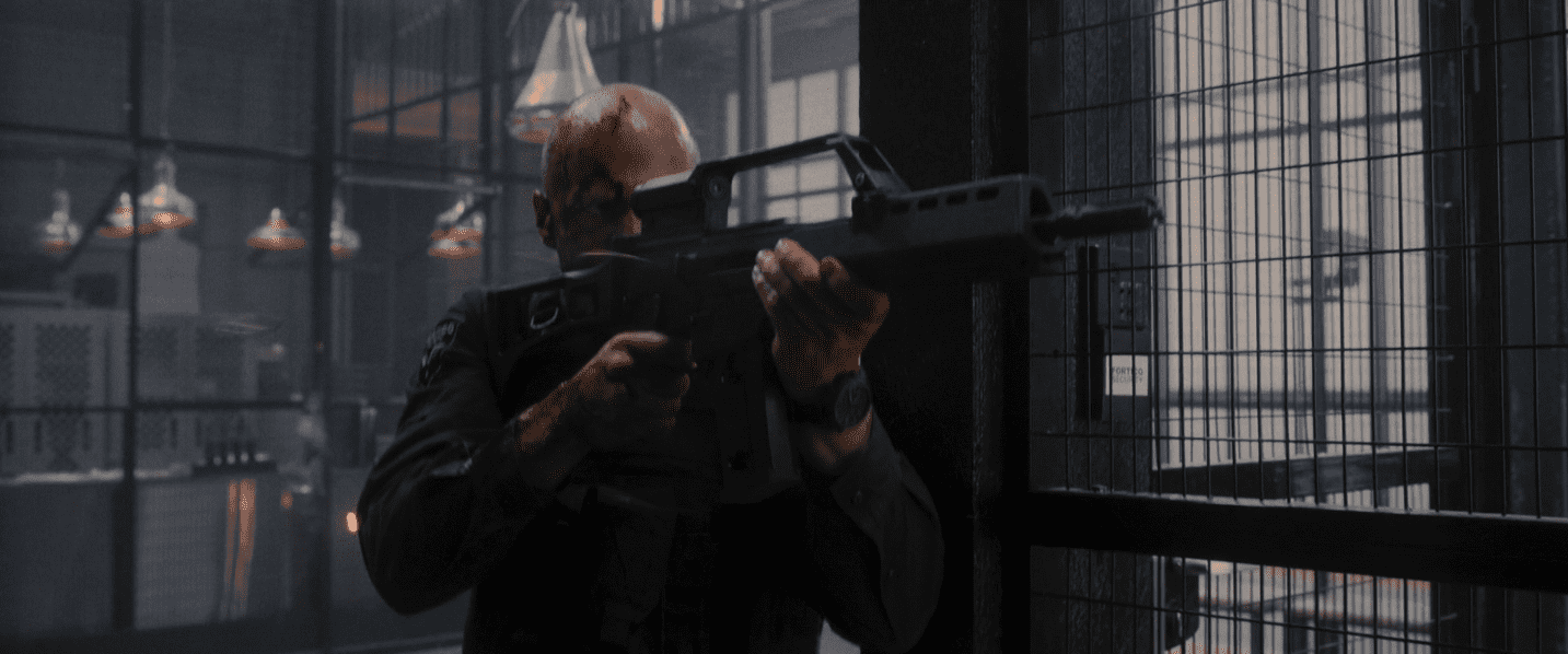Guy Ritchie décide très vite de prendre cet aspect à contre-pied avec une intro qui nous met direct dans le bain et surtout de façon beaucoup plus directe et moins mystérieuse. La caméra, placée à l’arrière du fourgon, nous montre l’attaque d’une bande de criminelles et le vol du précieux butin, grosse musique ténébreuse à l’appui. Vient alors « H ». À priori, H est un homme de la classe moyenne tout ce qu’il y a de plus banal, qui ne cherche pas les ennuis. On découvrira plus tard que sa candidature n’était pas anodine et que l’homme s’avère être une tout autre personne. C’est là l’un des gros changements envers l’original. Dans le film de 2004, Albert Dupontel incarnait un homme normal, qui n’avait jamais touché à une arme de sa vie, qui découvrait ce monde en même temps que nous. Un nobody, une personne de tous les jours. Ce n’est pas le cas ici, et si le changement peut au premier abord faire un peu grincer des dents, on se rend vite compte que ce choix fait plutôt sens. Nous faire croire que Dupontel incarne un être humain banal, ça fonctionne, mais nous faire croire que Jason Statham est un gentil voisin tout propre sur lui ne fonctionnerait probablement pas. Cette américanisation du récit apparaît donc finalement assez logique et fait sens compte tenu du casting impliqué. Ritchie dévie donc beaucoup du récit original passé la première demi-heure, et laisse de côté toute l’aspect communautaire des convoyeurs de fonds pour se concentrer sur quelque chose de beaucoup plus criminel. Un parti pris assez payant et globalement bien exécuté, jusqu’à ce que le metteur en scène et ses scénaristes décident d’élargir encore plus le point de vue.